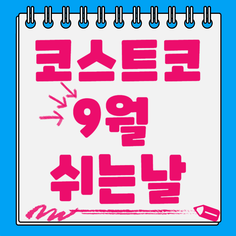 코스트코 휴무일 9월 추석이 있는 달이라서 대체휴무일 근무가 끼어 있으니